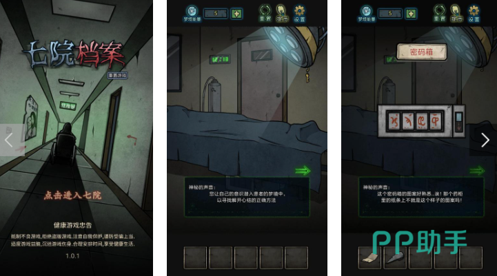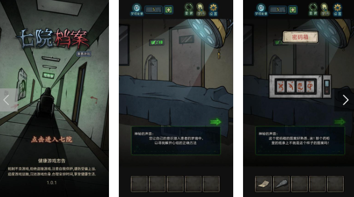 七院档案为玩家打造出一个惊悚刺激又烧脑的解谜天地,玩家化身医生踏入阴森诡谲的场景,医院病房、走廊等化作迷宫式布局,昏暗光影搭配悬疑音效,瞬间将氛围感拉满。穿梭其间,玩家需眼尖手快,不放过任何一张纸条、一把钥匙,这些看似不起眼的物品都承载着解谜线索,旁白引导如同一盏明灯,贯穿游戏全程,引领玩家深挖剧情,探寻患者心结隐匿之处,随着进程深入,不同患者的故事逐一登场,谜题复杂度也随之攀升。
