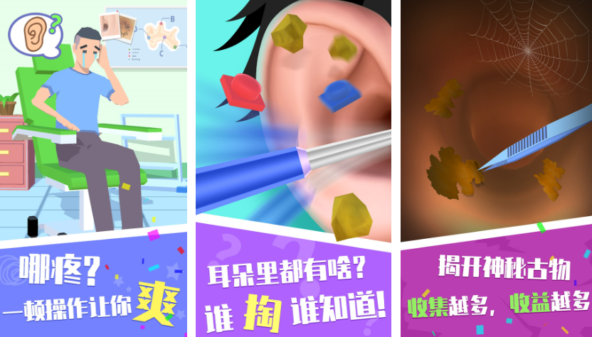 你是来掏耳屎的吧是一款不走寻常路,以掏耳屎为主题的模拟经营休闲游戏,游戏中,玩家摇身一变成为耳科医生,同时也是耳科医院的经营者。踏入游戏,首先映入眼帘的是一间属于你的耳科诊所,各种医疗设备一应俱全,这便是你的战场,当患者上门,你就要开始施展掏耳绝技,在治疗不同客户时,会碰到各种各样的耳部问题,除了常见的耳屎堆积,还有耳刺、耳脓、红肿等状况,需要玩家根据具体情况,选择合适的工具和治疗手法。