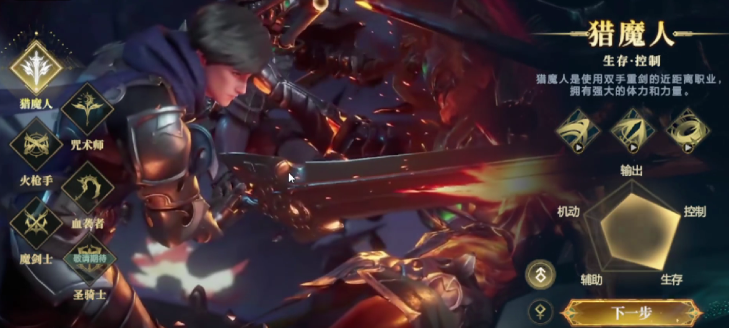 先介绍一下猎魔人这个职业,他在整个队伍中作为肉盾,擅长的是生存跟控制,由于他双手拿着重剑,属于近距离的职业,而他还拥有特别强大的力量。在技能特等方面,他的初始技能是巨剑狂斩,可以在一定范围内给对手造成攻击,降低对手的移动速度。另外他还有战剑冲锋,战神突袭,旋风之怒等等技能,施展以后会给敌人造成高额的伤害。