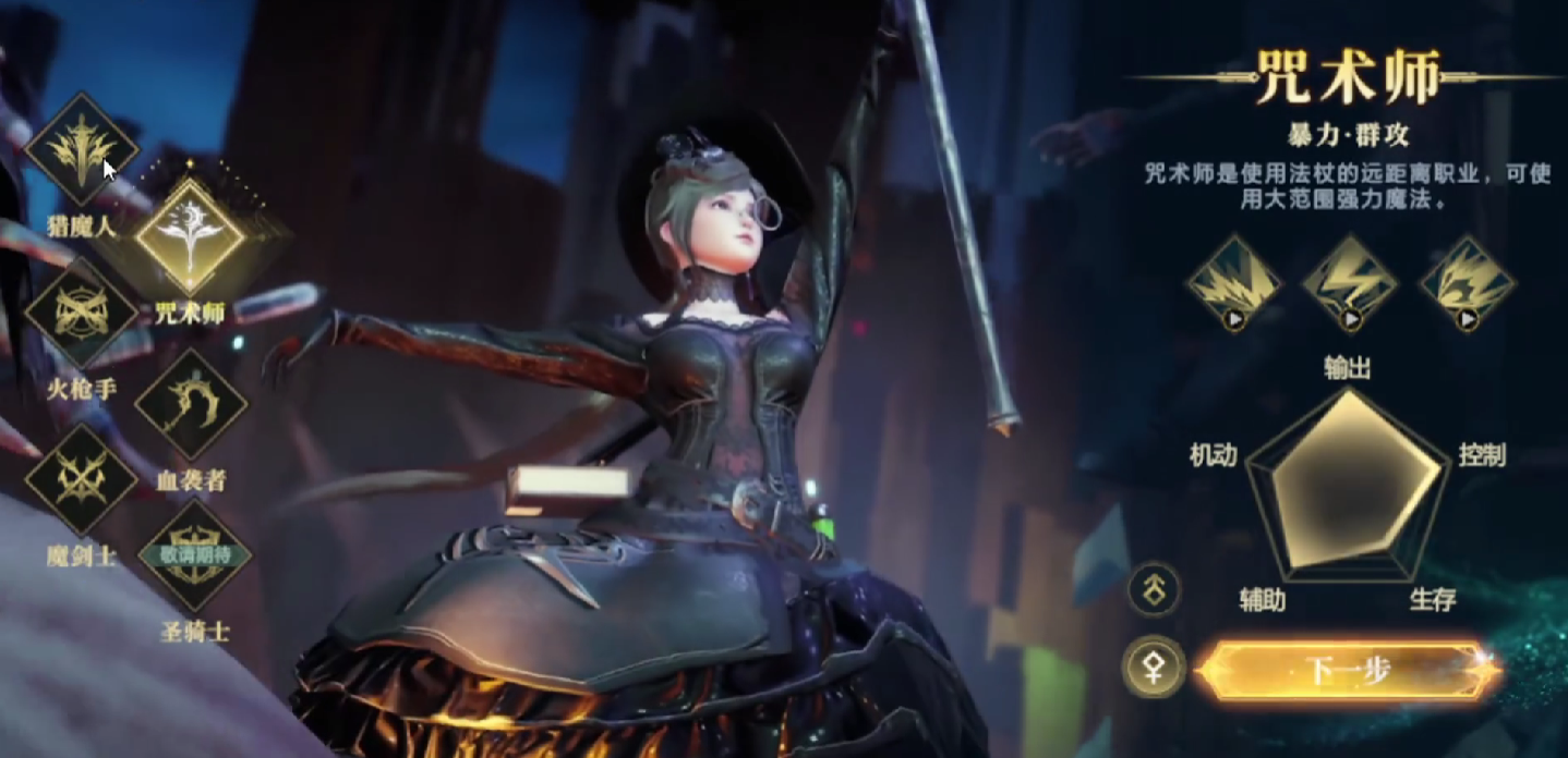 咒术师掌握着古老皱纹跟禁忌,作为职业之一,他拥有法杖,是远距离输出,拥有多个技能像虚空落雷,冰封之路,魔力狂潮,冰陨风暴等等,一旦将这些技能施展之后,可以产生强大的魔法,进而对敌人造成范围性的伤害。而他也可以远程打击,适合于群功。
