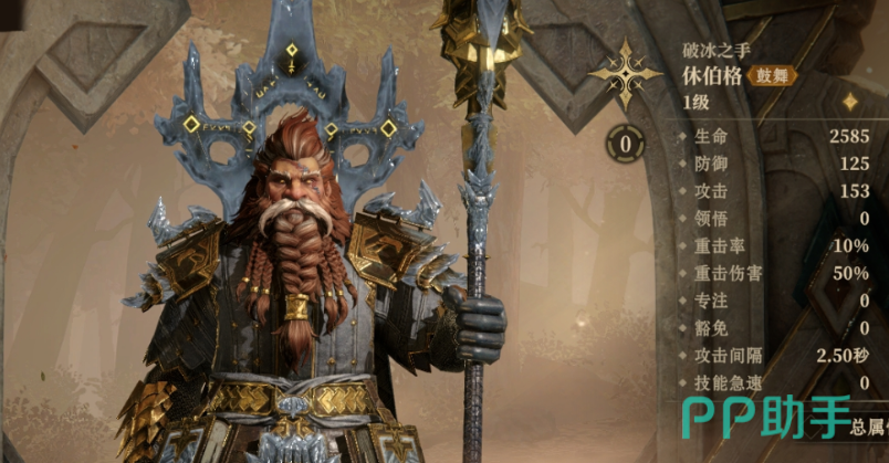 休伯格属于光属性的增益类角色,他还有另一个名字叫做破冰之手,休伯格的基础生命数值为2585点,防御数值为125点,攻击数值为153点,重击伤害为50%,重击率为10%,不存在有任何的领悟数值和专注数值,是一个纯属物理属性输出能力的鼓舞类角色。