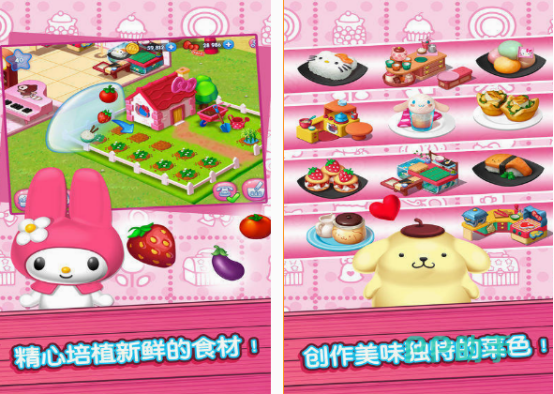 置身于有Hello Kitty美食小镇以后,除了可看到琳琅满目的食品,及让人眼花缭乱的食物,整体的风格更是比较可爱的。颜色清晰又靓丽,制作美食的时候,通过自己进行培育的新鲜食材,使每个角色都是具有特色内容又好吃的。经营美食小镇的过程中,要不断的解锁美食,满足客人的需求,利用获得的收入来使餐厅得到扩充。