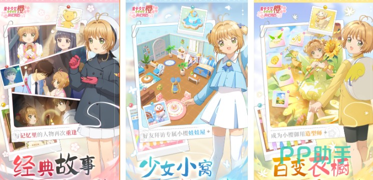 魔卡少女樱:回忆钥匙是一款3D养成类角色扮演手游,玩家可通过盲盒抽取、碎片收集等方式,获得不同品质的小小樱和小伙伴角色,游戏主线剧情紧密贴合原作,玩家将跟随小樱的脚步,在爸爸书房发现被封印的魔法书,唤醒小可,然后开启收集库洛牌的冒险,