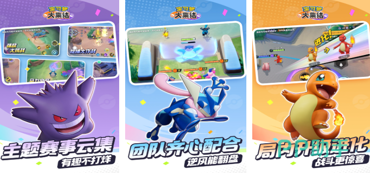 宝可梦大集结是一款创新MOBA游戏,主要为5V5对战,分为匹配和排位模式,限时10分钟,先达300或500积分者胜,击败野生或敌方宝可梦、开宝箱获伊奥斯能量,注入敌方得分区得分,宝可梦达到一定等级进化,能学更多技能,除了常规模式之外还有草团滚滚滚、双弹排球等多种特殊玩法模式。