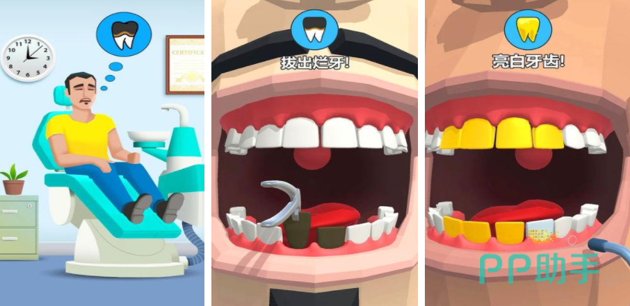 牙医是所有医生职业里面比较特殊的一个,也是在街头比较常见的一个,游戏里会成为一名资深的牙医,帮患者修补蛀牙,有些顾客还有特殊的要求,需要严格按照他们的要求修改牙齿的颜色,每个关卡中都会有一名顾客提出特殊的需求,需要在特定的时间内快速完成他们的需求,这样玩家才能获取收益,持续经营这家牙医诊所。