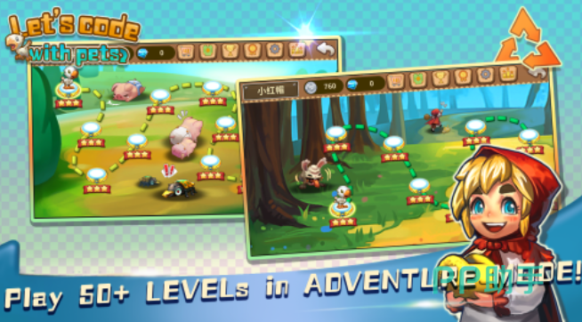 少儿编程一般都比较偏向于乐趣性的设定,编程吧宠物就是一个可以用寓教于乐的方式让孩子学习编程的游戏,游戏里会扮演成童话角色开启闯关,通过冒险可以学习编程指令锻炼思维能力,关卡难度也会逐渐增加,这会让孩子可以从易到难,循序渐进的提升自身的逻辑思维能力。
