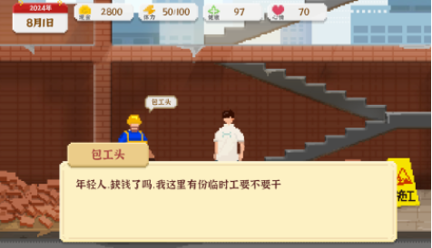 游戏讲述的是失业青年的生活故事,从小身边的亲戚朋友都会比较注重学习,好在主角的成绩一直都很不错,高考也有了一个满意的分数,好像人生已经朝着一个正轨发展。但是在进入到社会之后才发现,因为选择一个不喜欢的专业毕业就等同于失业。为了能够重新来过,必然就需要做出抉择,游戏中每一个选择都是新的开始。