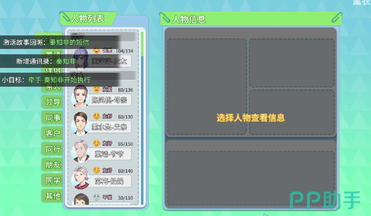 当然,秦知非的关系网也是需要玩家打通的,玩家可以通过网络关系信息,给予个不同类型npc礼物的方式,来了解到秦知非的整体人物故事。