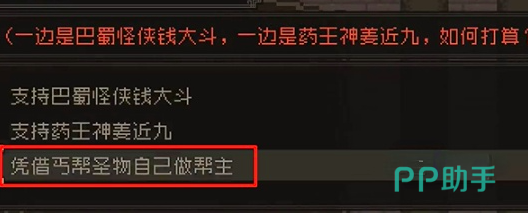 之后玩家需要来到终南山的大墓通道当中,在这里探索一番就可以找到物品旁空时,这同样也是丐帮的信物。玩家在得到这几个信物后就直接前往聚贤林当中,就可以触发与丐帮帮主的对话,在对话当中选择最后一个选项,玩家就可以成功触发战斗,不过需要提醒玩家的是在战斗的过程当中可以选择巴蜀怪侠前大斗和药王神姜近九来帮助自己辅助战斗,不过对战过程会有一定的难度。在完成相对应的战斗情节后会触发正义和邪恶两个选项,建议玩家可以选择正义选项,因为可以学习到丐帮的武林秘籍对于玩家的武艺精进有着非常大的帮助,而且可以降低后期的战斗难度。