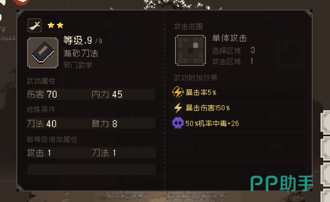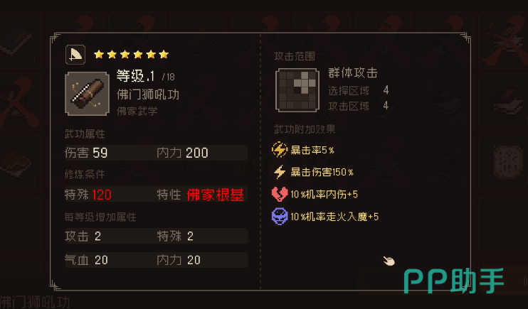 除了武功之外就是功法的选择,游戏里的功法多种多样,如果选择的是孤儿,那最最推荐的就是狮吼功,在后期可以借助孤儿的高道德值把狮吼功转化成其他的功法,但如果比较倾向其他角色的话,那就可以选择刀法或者剑法,这样就可以购买物资道具,这样就能让角色拥有更强的战斗能力。