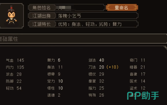 另外在游戏里比较推荐的还有小乞丐,这个小乞丐自身的身法和轻功都是非常优秀的,可以在后期学习西域的武学,只不过需要注意的是这个职业的角色臂力都会比较差一些,想要学习关于臂力武功的话,那就需要多去付出一些努力,提升角色的臂力,放牛娃和小乞丐的设定相似,只不过放牛娃在道德方面会更加优秀一些,高道德可以触发一些隐藏的剧情,这个角色也有劣势,就是悟性比较低,可以多去选择一些相对比较精明的武功。