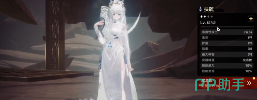 白色旗袍,手持小折扇,是偏召唤类型的角色,可以召唤云璃,最多能同时存在5个云璃,继承角色100%属性,选择周身最多3个敌人作为目标,会持续对周围人造成伤害,同时记录伤害量,每隔3秒可以将记录的伤害量转化为治疗,治疗周围的队友,并且可以回复神智。