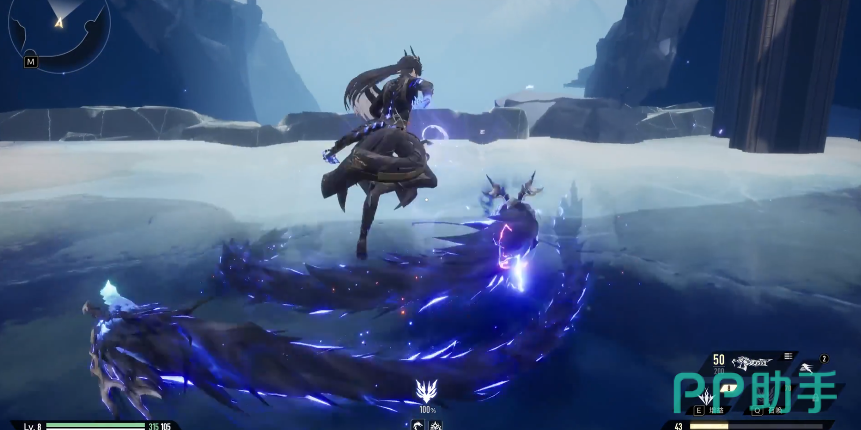 先来看他的增益技能,让身处他周围的对手受到雷属性伤害,并令自身跳跃到空中,滞空期间让下次下落攻击的攻击范围增大;如果“玄蛟”存在,下次下落攻击时,玄蛟会同时进行一次特殊攻击,敌方单位受到雷属性损伤。