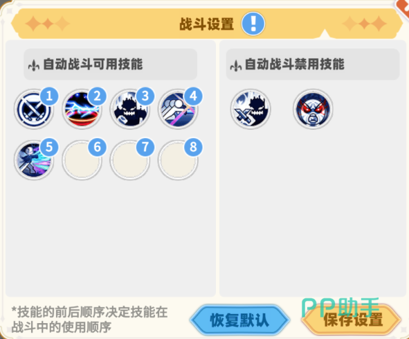 至于彩虹橙双刀技能顺序方面,技能书少,凌波斩的收益要比大风车高,可以将1和4的位置互换,如果技能书多大风车收益更高则可以按图里的顺序摆放。其中狂神觉醒和暴走是常驻的,需要玩家手动去开启。