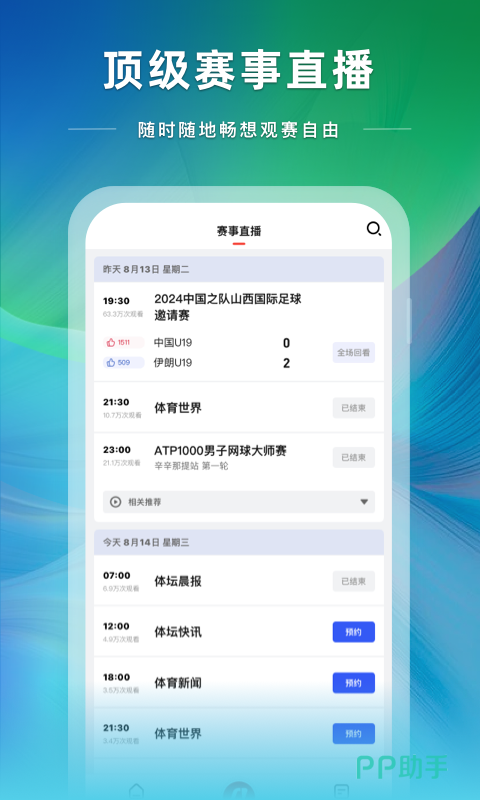 这款软件最大的功能就是附带十二小时的回放功能,因为很多小伙伴由于工作或者学习的原因漏看了很多精彩的比赛,那么这款软件就能帮助大家解决这个问题。