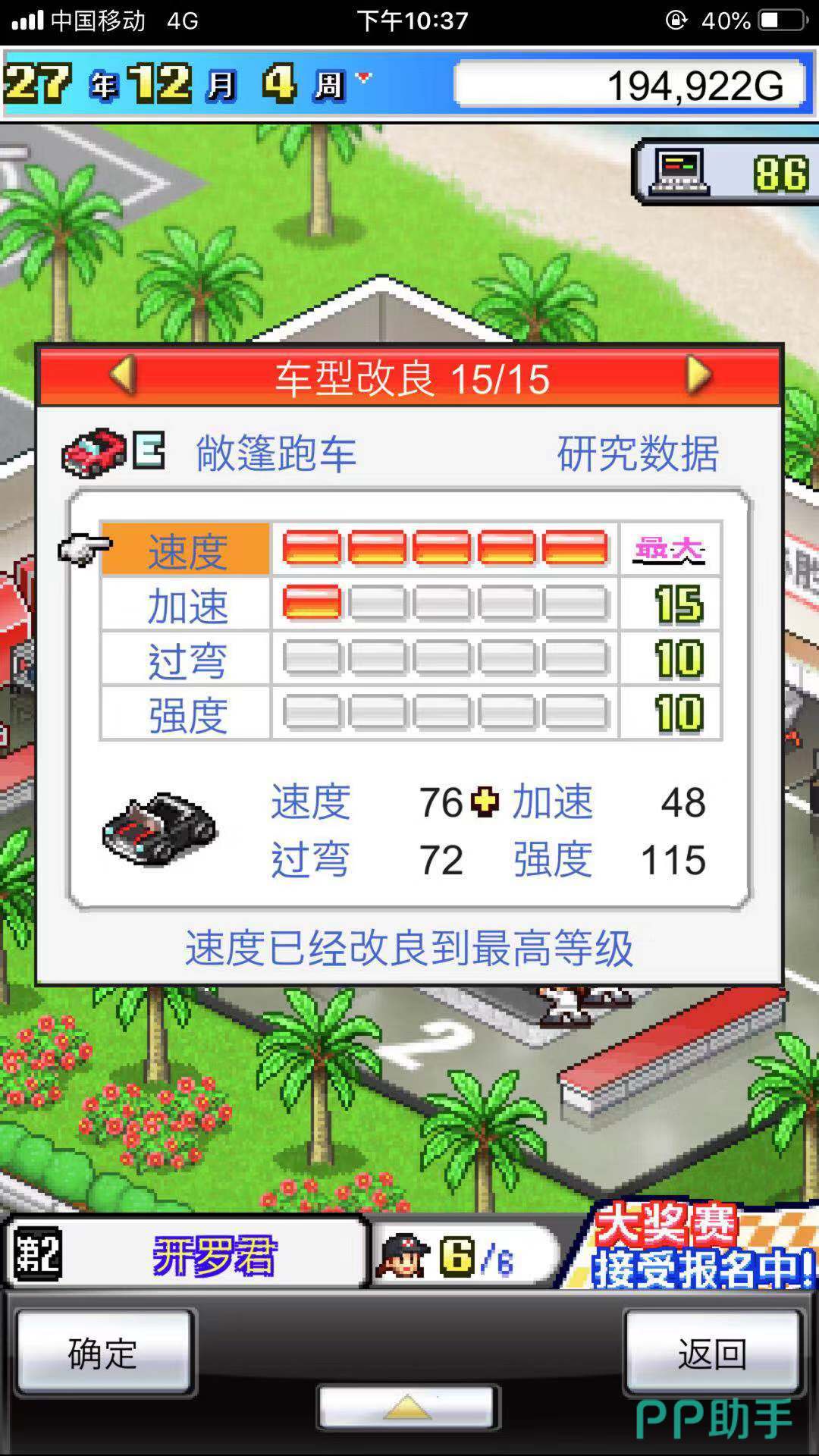 在这一整个流程中最缺的就是研究数据,在给车辆进行改良的时候不要抓住一个属性一直改,比如速度属性进行第二次改良的时候花费的研究数据就增多了,所以选择另一种属性改良,反正这些车我们也不怎么用,就是用来解锁超级车的。