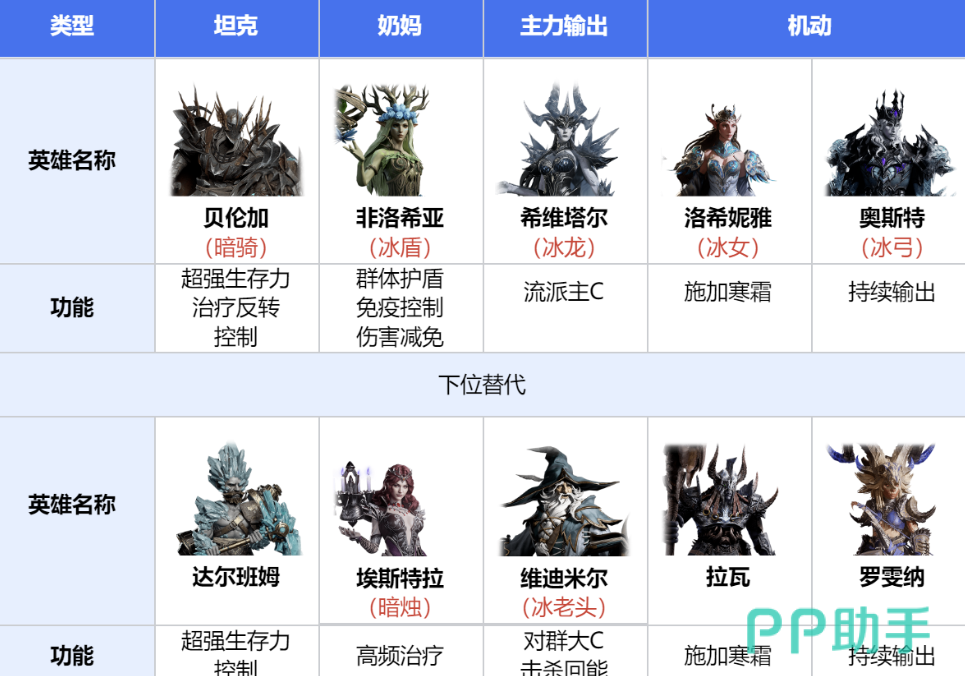 强大的阵容搭配非常多样,火毒队的搭配推荐成员厄尔丹、菲莉丝蒂、芙罗拉、罗塞尔、克莱索斯/欧勾克,厄尔丹作为前排坦克,防御和输出兼备,能抗能打还能限制敌人,菲莉丝蒂和芙罗拉组合可打出高额火伤,罗塞尔提供辅助增强生存能力,克莱索斯可群体护盾、转治疗等,欧勾克能治疗和驱散负面效果,降低敌方攻击力,冰暗队的搭配推荐成员席维塔尔、洛希妮雅、多尔切蒂斯/菲洛西亚、勒瓦妮丝、贝伦加/古・狄恩,席维塔尔是核心,爆发输出强。洛希妮雅稳定释放寒霜状态,多尔切蒂斯或菲洛西亚提供控制和辅助,勒瓦妮丝通过召唤增加输出,贝伦加或古・狄恩增强队伍生存能力。