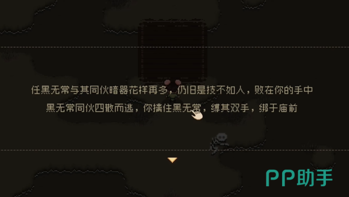想要招募黑无常对玩家也是有要求的,确保自身道德值低于10,前往黑无常的藏身之地,在一处荒凉的悬崖边,附近有陷阱与伏击,还有几波黑无常的追随者,在将他们击败后可以选择与黑无常对话,选择迂回试探获取藏宝图,若选择直接追问可能会激怒他,导致最终战斗失败,获得藏宝图且道德值低于10的时候,黑无常会同意加入队伍,若获得的是《瀑雨落梨花》,则会触发黑无常跳崖结局,失去招募机会,黑无常有着强大的输出能力,能在战斗中打出高额伤害,帮助玩家快速击败敌人,尤其是面对群体敌人时表现更为突出,黑无常拥有一套高爆发的技能组合,像“鬼影追魂”技能,可对群体敌人造成范围性伤害,在群战中能迅速清理小怪,降低敌方群体血量。