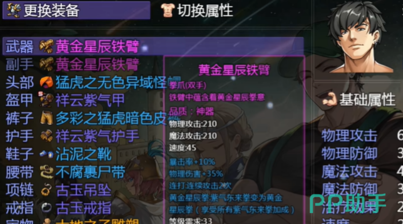 接下来说说武器部分,拳套角色的核心装备之一——黄金星辰铁臂。这把武器可是12层通关奖励,专为拳套角色打造。它不仅能够大幅提升角色的输出,而且技能效果加成也相当不赖。拿到它,你就能快速开启你的输出盛宴,打击敌人时的痛快感不言而喻。