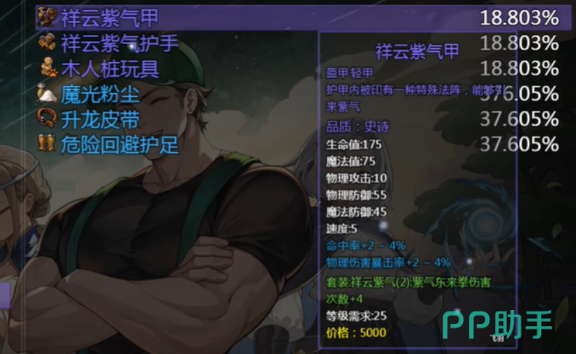 对于拳套角色来说,套装的选择也至关重要。推荐搭配“祥云紫气套”,这套装备包含“祥云紫气甲”和“祥云紫气护手”,这两件装备的加成效果能让你的输出能力得到全面提升。它们是通过卡尔达副本BOSS掉落的,适合拳套角色,特别是对紫气东来拳技能的伤害提升很大。