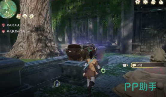 天师陵墓玩法较为简单,打开地图前往右上角树林中与柱子互动开启关卡,进入后会发现有两个较大的石球顺时针转三下,之后将前方的木箱移开,会看到第2个石球顺时针移动两下,紧接着遇到第3个石球,顺时针移动两下,最后在左边遇到一个金色的石球,顺时针移动一下,只影到对面的石球上,再继续顺时针移动一下,即可将宝箱打开完成任务。