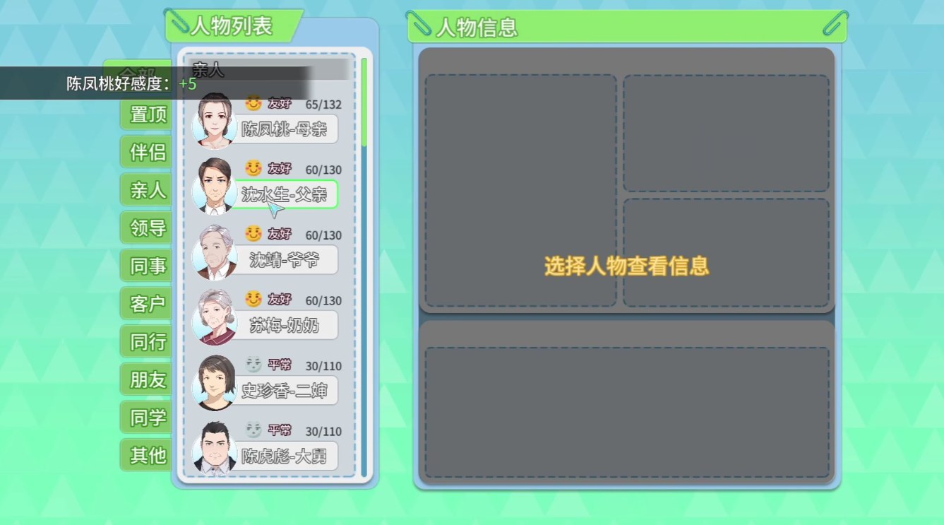 第二种方案是旅行和放松,旅行在游戏当中是可以提升大量心情数值的手段,但是会消耗玩家的存储货币,旅行提升的心情素质,根据玩家所报的旅行团进行拆分,花费的金额越高,玩家所获得的心情数值恢复量也就越多,当然,玩家也可以选择在自己楼下的小花园内散步,也能够少量的恢复心情素质。