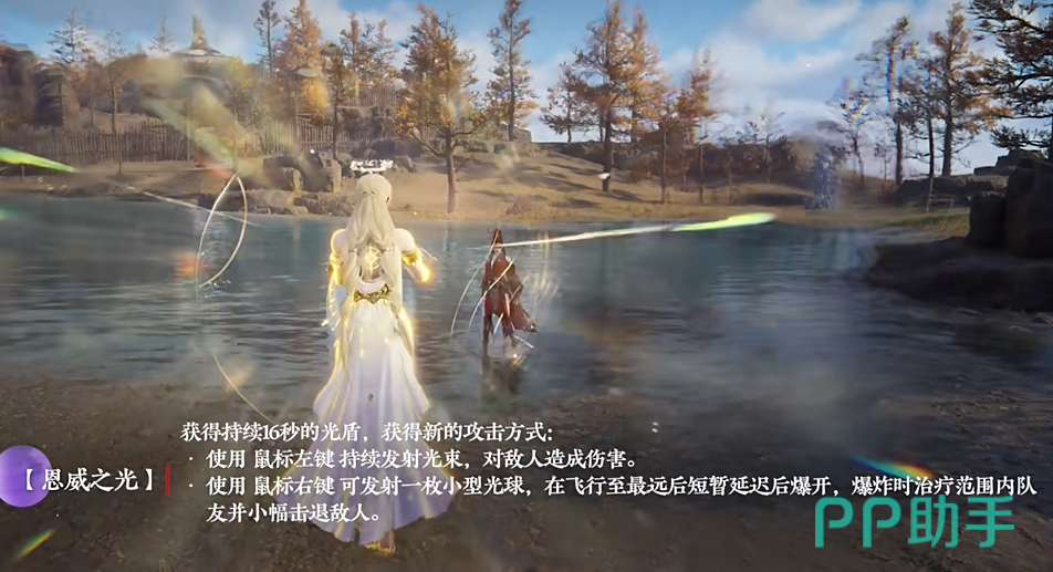 恩威之光技能使用后席拉周身会迅速被一层持续 25 秒的光盾环绕,这层光盾如同坚不可摧的壁垒,保护着她免受敌人的伤害,当敌人试图近身攻击席拉时,她可以先发射小型光球,紧接着用光束引爆,让敌人陷入眩晕,然后再用持续的光束输出伤害。