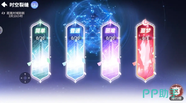 这时大家就可以利用飞翔石的多段跳跃技能,从左边跳到右边再从右边跳回左边即可躲避怪物攻击,如果中途不幸死亡,只需在原地复活即可继续挑战,这里有个小窍门是复活有倒计时,可以在倒计时还剩最后2-3秒时再复活哦,而噩梦难度下的水晶保卫战是时空裂隙中的最后一个挑战,这三个难度级别采用统一模式,但需要玩家提升战力才能守护更高难度的水晶。