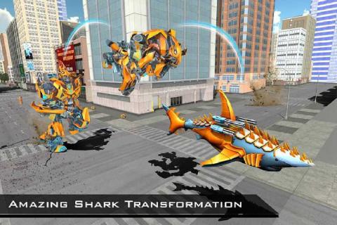 《变形鲨鱼》这款游戏将鲨鱼和机甲进行了毫无违和的巧妙交融,而且打破了常规的深海猎杀玩法,支持玩家们任心所欲的在陆地和深海双战场开启战斗,每一个鲨鱼战士都具备着力量澎湃的立体感,我们可以化作人形鲨鱼,在海底中肆无忌惮的进行游走猎杀,在陆地上切换战斗形态,去展开暴力的战斗和摧毁。