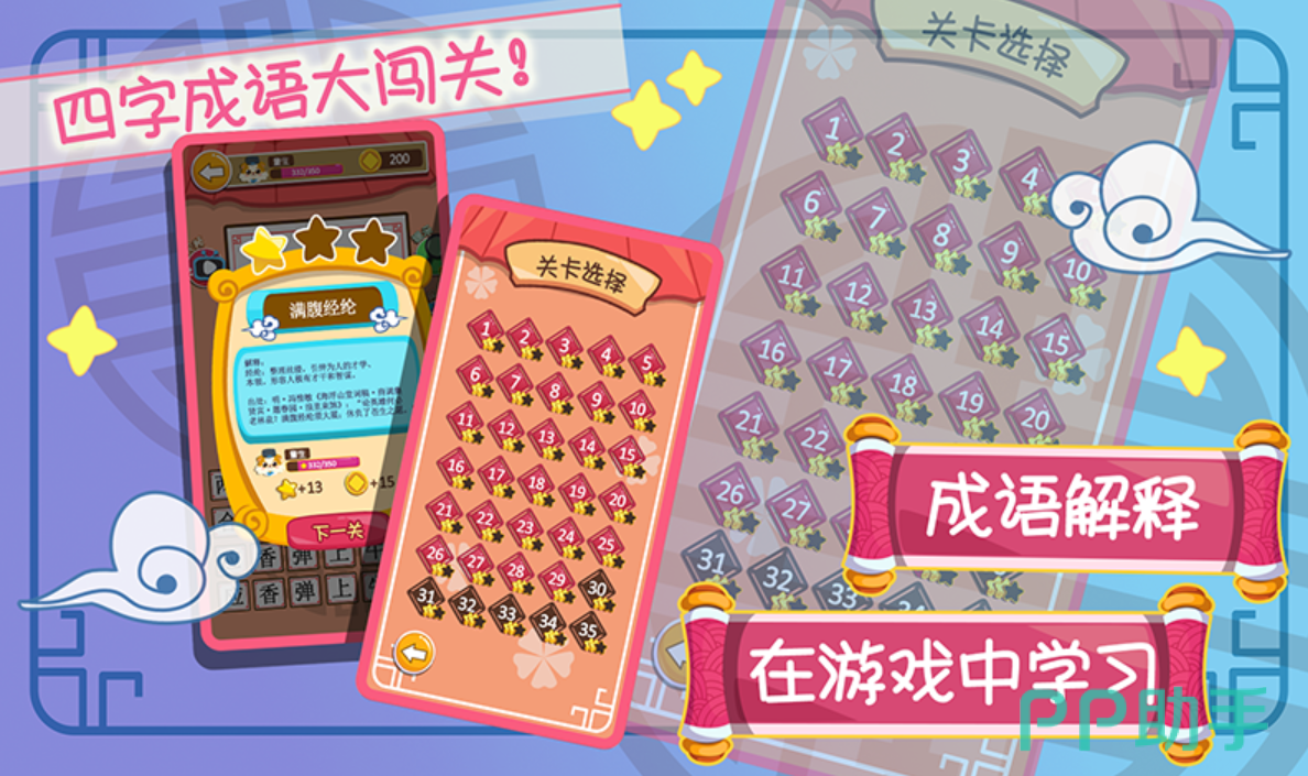 这款游戏匠心独运,精选数千个日常高频成语,巧妙编织成一百多道由易到难的趣味关卡。玩家只需简单操作,按顺序拼凑出四字成语,即可轻松消除。游戏内嵌丰富动画与趣味元素,让学习过程变得生动有趣,每当一个成语被成功解锁,其含义与典故便如画卷般缓缓展开,为玩家揭开成语背后的文化知识。