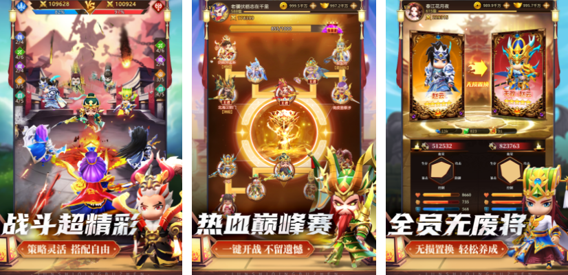 只要是涉及到战争类的设定,三国类型是肯定会出现的,军师请布阵呈现的就是一个自由度极高的三国世界,在这里将会用卡牌的方式不断比拼,每一次布阵都可以通过放置不同的卡牌调整位置,组建出一支超强的战队,需要根据每一个角色的设定排兵布阵,这样才能在对战的时候有更强的战斗力,游戏里所有的三国角色都会成为q版的形象,可以带领他们开启一场充满趣味的三国之战。