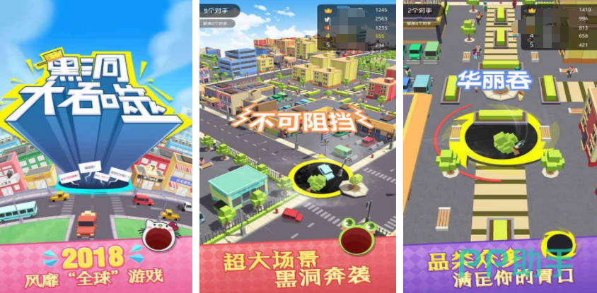 黑洞大吞噬是前几年非常受欢迎的一个游戏,现在这个游戏依旧是很多玩家最喜欢的,里面除了趣味的消除设置之外,还会有竞技元素的设定,玩家将会和其他成员化身成初级黑洞,进入到一个小镇中,需要不断吞食物品喂养黑洞,让他们的体积得到扩充,假如在这个过程中遇到等级比自己小的黑洞,也可以选择把他们吞噬进来,这样就能让自己的体积快速膨胀,所以要时刻小心自己周围出现的其他成员。