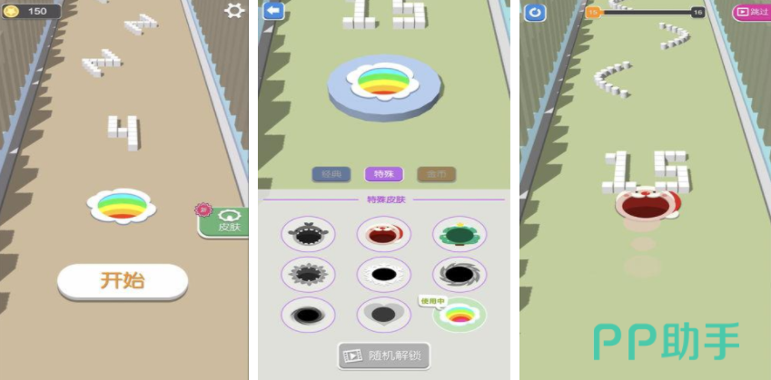 很多黑洞吞噬类游戏都比较偏向于自由设定,可以操控黑洞随意在场景上探索,但黑洞大闯关比较偏向于手速挑战,里面会设定一条赛道,玩家需要做的就是控制黑洞的左右方向,让它能顺利吃掉赛道上不断出现的这些方块,方块会拼凑成不同的形状,黑洞的体积有限,假如在游戏里出现了方块拼凑而成的图形偏大的情况出现,这时候就需要快速抉择,确保黑洞能把大部分的方块都吞噬进去。