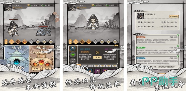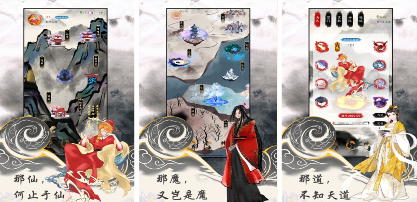 在寻道大千游戏中,玩家前世是一个强大的修仙大能,因为错入远古秘境最后只剩一缕残魂,今世以小妖身份重新踏上修炼之途,以水墨画风为主,开局玩家可从鸟、猪、熊猫、鱼、猴子五类角色中择一开启修仙之旅,主要通过砍树获取等级、装备等各类道具,仙树等级与渡劫境界提升后,能解锁更高品质装备。