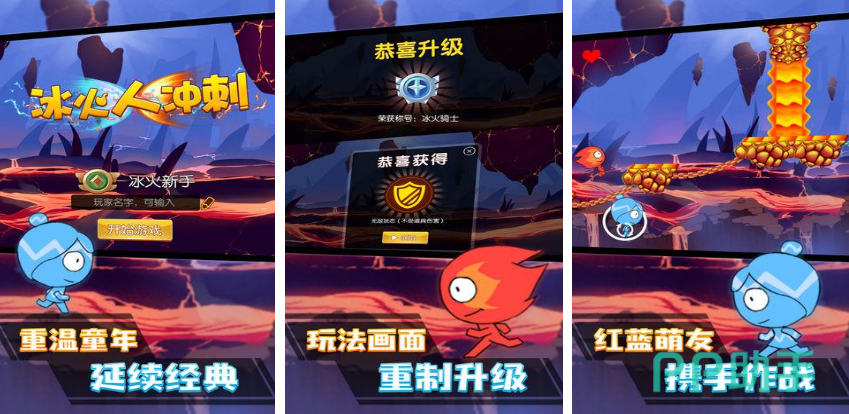 冰火人冲刺是一款节奏明快、充满刺激感的双人冒险游戏,在延续冰火人经典形象与合作模式的基础上,融入了高速冲刺玩法,关卡中设置了大量连续出现的障碍与陷阱,需要两人紧密配合、交替冲刺,面对复杂机关组合,如火球喷射机关与冰刺陷阱相邻,火人冲刺引发火球机关,利用火焰热度使冰刺融化一部分,冰人再趁机冲刺通过,灵活运用技能特性化解危机。