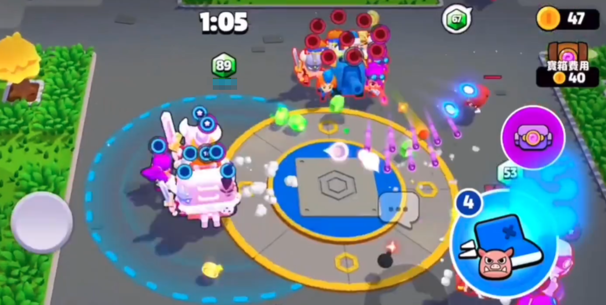 首先当大家开启一场新的比赛时,就有可能出现打地鼠事件。这时候地图周围都会充斥着大量的地鼠机器人,如果我们选择移动的话就不会攻击它!如果选择停下来的话就会攻击地鼠。刚开局的话建议选刺客角色,因为这样灵活性较高。