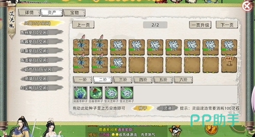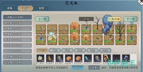 在混沌珠中开辟灵田,等级高,灵田数量就多,升级后,记得及时开辟新的灵田。灵田的数量直接影响到你的灵植产量,因此尽早升级混沌珠是关键。