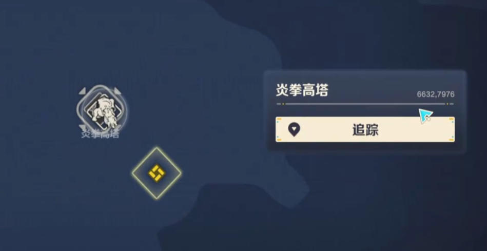 接着要找到它的位置,这个boss的位置就处于炎拳高塔上。我们可以直接打开地图,然后再追踪这个boss。炎拳高塔的话,位于炎拳离岛中,大家可以仔细找一下。坐标为6632,7976,按照坐标就可快速找到。