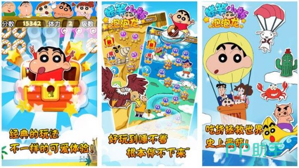 此游戏以有趣的消除元素为竞技模式,操作方式也是简单的发射泡泡促使关卡内能够形成三个或以上相同泡泡连接,便可以实现完美消除。简单有趣的玩法搭配活泼的蜡笔小新元素,为大家创造了满满的快乐。这里有多达近百个挑战关卡,同时其中的各种炸弹道具也是其乐无穷各有独特功能,能够帮助大家提升关卡挑战的进程。