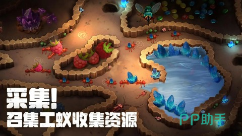 以独特的策略玩法,让玩家化身蚁群的指挥官,在错综复杂的地下世界中建立属于自己的帝国。巢穴深处,工蚁们忙碌地搬运食物,填满储藏室,为族群的成长提供源源不断的能量。地表之上,探索的脚步从未停歇,未知的区域隐藏着机遇,也潜伏着危险,每一次前行都可能迎来激烈的战斗。敌对蚁群在觊觎领地,掠食者在暗处伺机而动,唯有强大的兵蚁队伍才能确保王国的稳固。