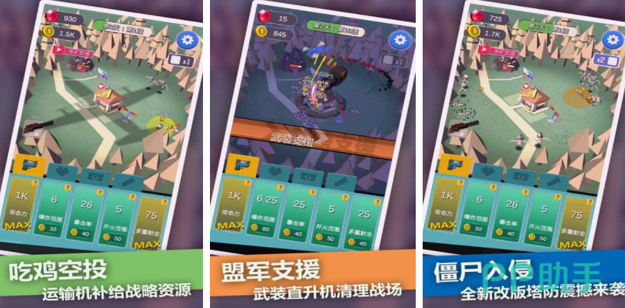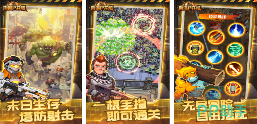 僵尸末日塔防主打的就是非常刺激的塔防对战,里面到处都会充满被僵尸病毒传染的入侵者,这些入侵者没有痛觉,所以他们会肆无忌惮的破坏城市,玩家需要做的就是修建出一个防御塔,借助这些防御塔的力量疯狂扫射僵尸,在这个过程中既能体验到割草的快感,又能成为孤胆英雄,不断消灭这些入侵者,拯救城市。