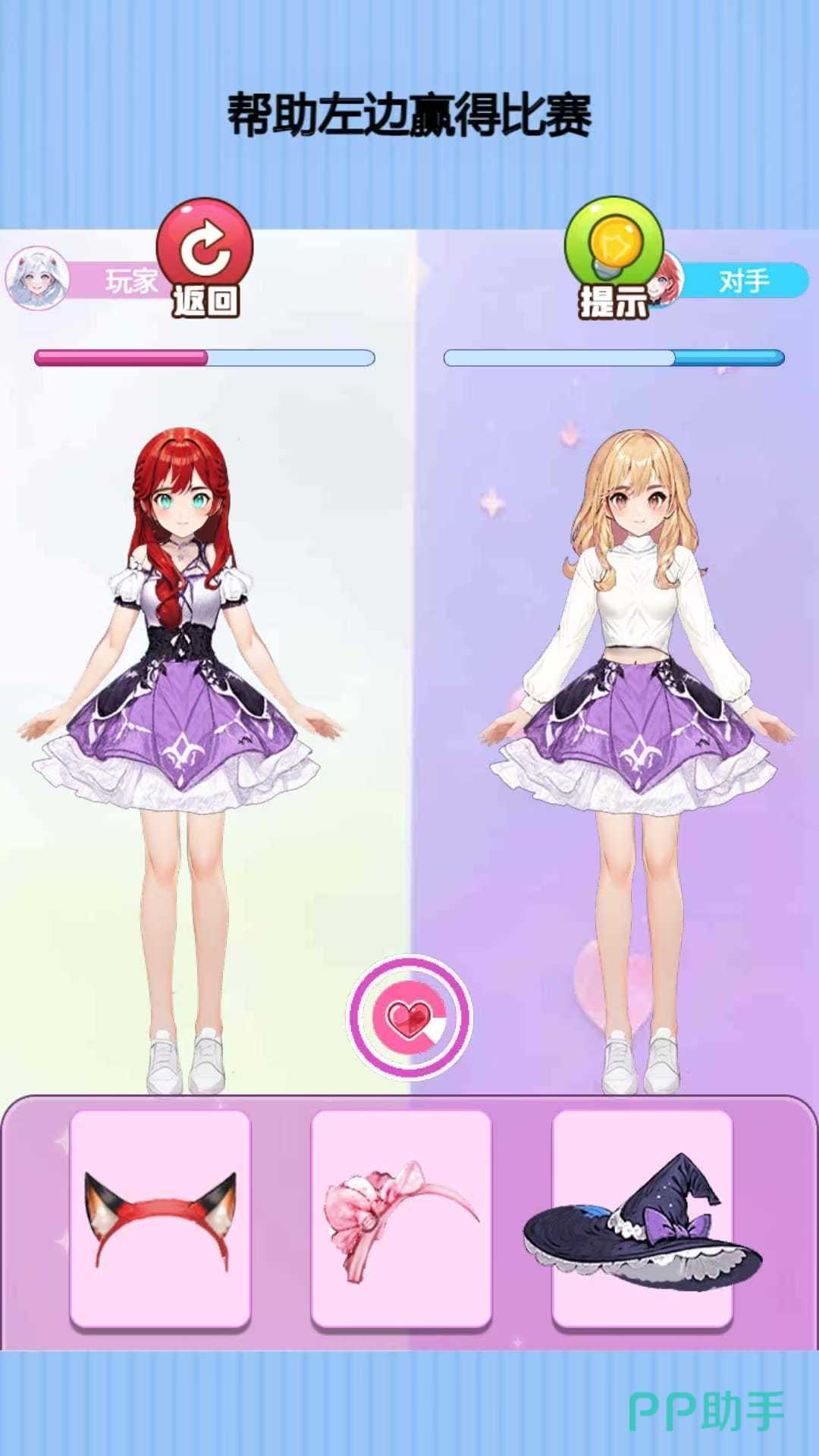 如果觉得时间太无聊,那打开游戏参与各种设计穿搭,塑造出心目中喜欢的美少女形象,各种服装尽情选择,还有漂亮的发箍和头饰,让游戏人物显得更加俏皮,同时根据不同的比赛风格,选定妆容和服装,想要重新选择衣服,只需要点击返回键,当装扮完成,系统会给出评分,评分大于对手即可获得奖励。