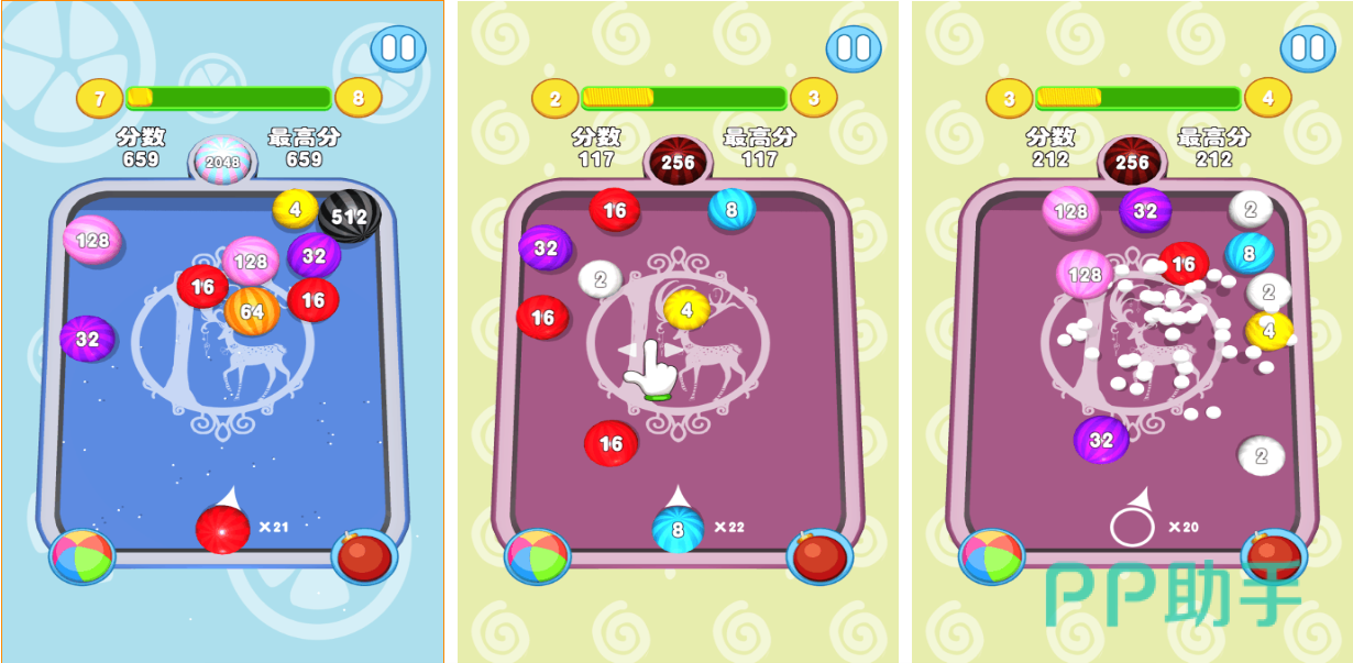 这款数字合成游戏看上去跟打台球差不多,具有弹射合成的特殊操作与精彩的合成动画,对比其他的2048游戏本作操作更简单,老少皆宜的数字合成设定体验感更解压,主题各异的台面皮肤可通过合成任务解锁,倒计时的苛刻条件无疑提升了整体紧迫感,点触屏幕不同位置就可以控制数字球的方向,无论是玩法还是视听效果都很有辨识度。
