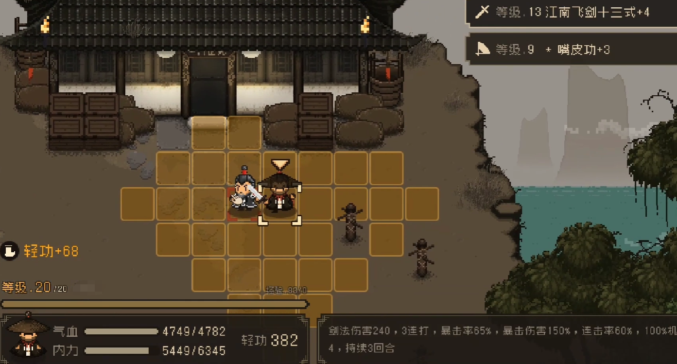 在技能的选用上面,如果玩家背包当中有参商九式,则可以直接使用该剑法作为主流攻击记忆,若玩家背包当中没有任何强度攻击技能,也可以通过加点自己移动速度的方式,来获得更多放风筝的机会~