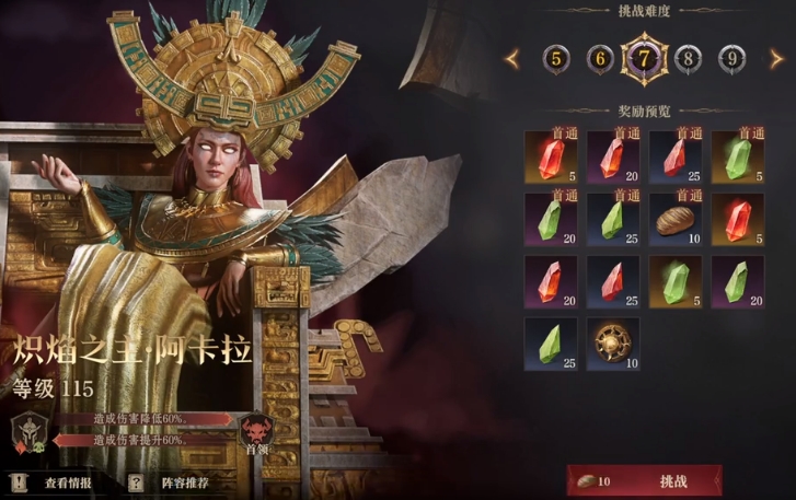 由于该副本的挑战上还是有难度的,所以各位到时得去根据自身的英雄阵容以及实力来选择,不同难度的副本可能会有不同怪物强度、数量与机制,而大家要做的就是去灵活应对,以此来达到取胜的目的。