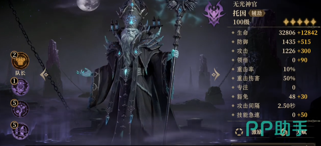 他可谓是暗系的大奶,也是为数不多能提高前排坦度的男奶妈。自身防御和血量的一定程度能增加前方英雄的血量,不管是对于保护核心,还是坦克都有巨大的提升效果。队长技适用于所有在战斗,能提高友方50豁免。”暗影之护”的被动,在战斗开始前,表示并强化自己身前第一个队友,令他获得神官25%生命上限和防御效果,之后对自己添加隐形状态,隐形中的他无法成为单体技能的目标。