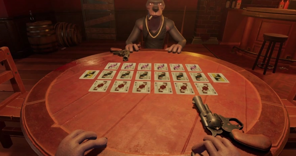 每局游戏,会有6张Q,6张K,6张A,2张万能牌。每局游戏会指定恶魔牌,如果拥有的话,恶魔牌只能是单张出,在每次出牌后,下架有机会点击验证,验证成功的话,出牌的你需要射击一枪,验证失败的话,质疑你的玩家则需要开一枪,如果验证出恶魔牌的话,在场的所有玩家都需要开一枪,哪怕已经成功逃脱的玩家也要自开一枪。当场上只剩一人时,战局结束。