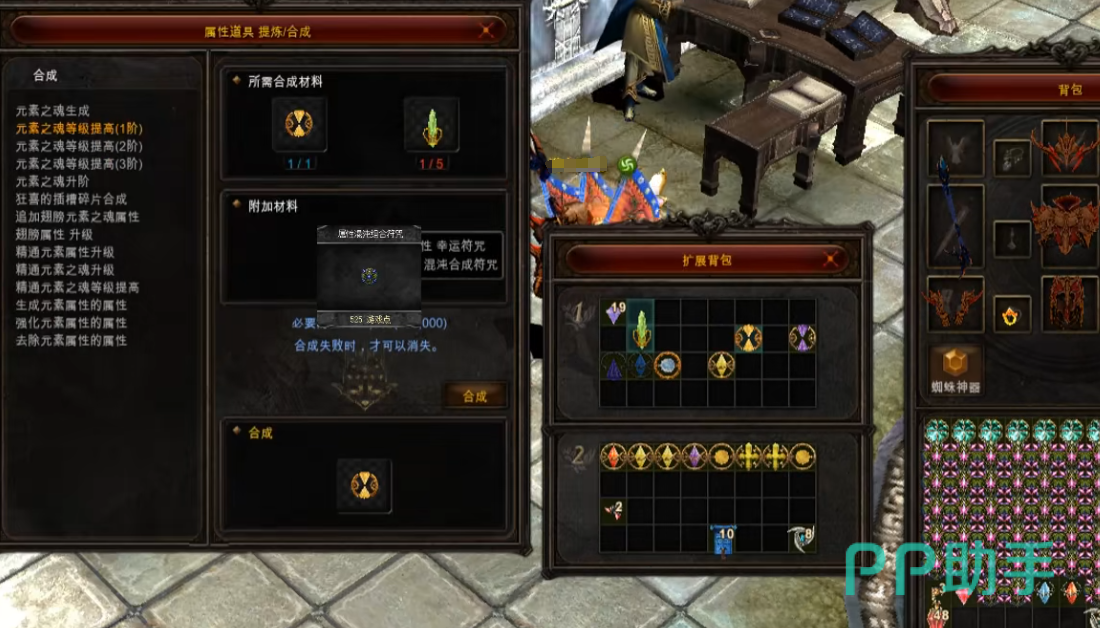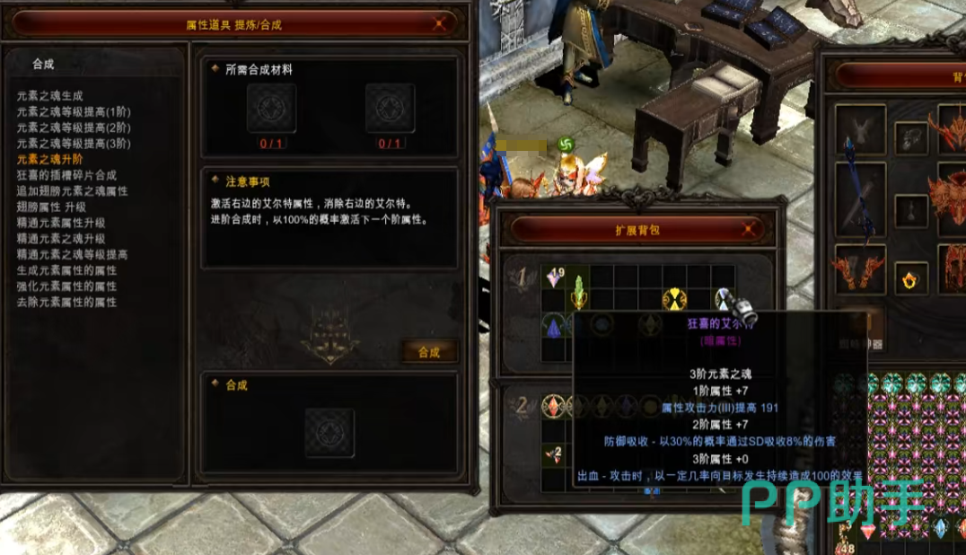 幸运符和保护符只能二选一,失败的话会直接消失。我们优先考虑保护符,这样就不会消失了。当我们将其都加到七之后,在选择第三个选项。也就是元素之魂等级升阶,把两个加七的狂喜,一个做主,一个做辅。
