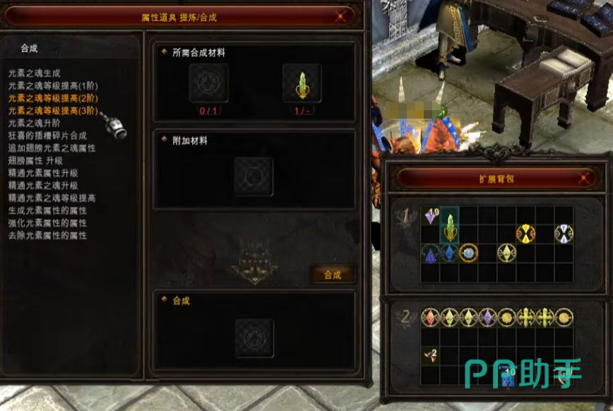 接着在自己的背包里面找到两个狂喜,接着我们要将他们强化至+7。然后再点击第二个对话选项,也就是元素之魂等级的提高。除了需要放入一个狂喜之外,然后还要加5个强化道具。如果你担心强化失败的话,就可以放入一些保护符咒。