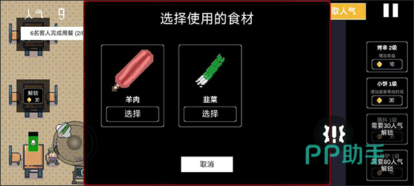 小编给大家带来的第一款游戏是模拟经营类游戏。游戏里玩家将经营一家淄博烧烤店,游戏以像素画风呈现给玩家,在游戏开始有客人来店里,玩家需要做的是满足顾客的需要,提供顾客满意的食物,可以获得奖励,食物种类很多,随着玩家人气的增长,会逐步解锁一些物品,还存在一些小任务,完成会有相应奖励,游戏非常的轻松惬意。快来体验当淄博烧烤店的老板吧。